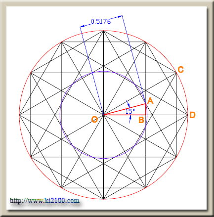 CD برابر 30 درجه ميباشد و همچنين OB=r/2 ميباشد . با توجه به اينكه OB=OAcos15° پس